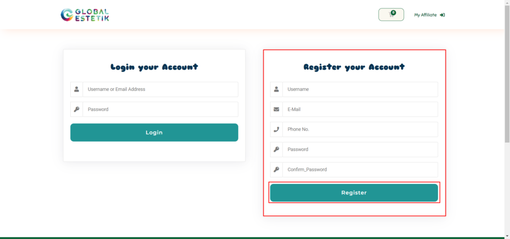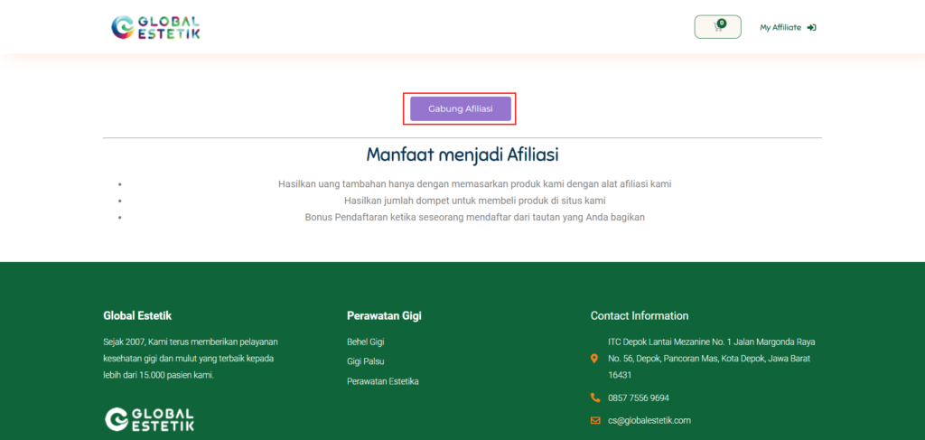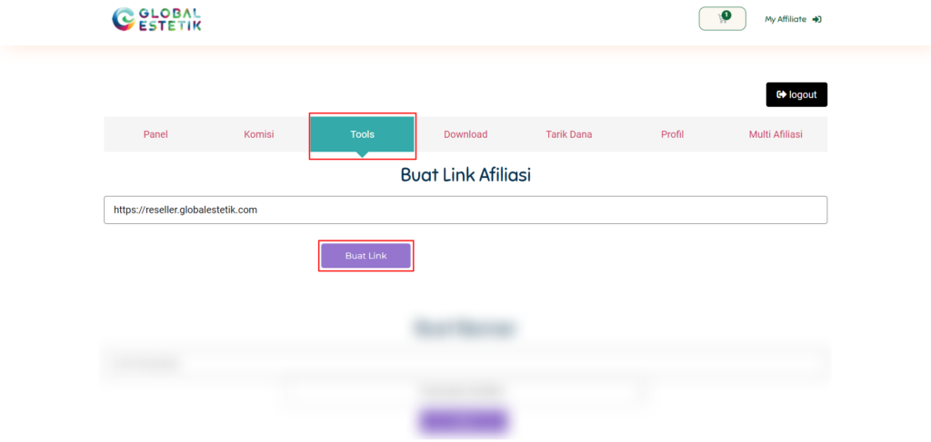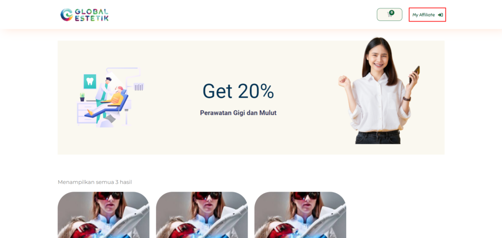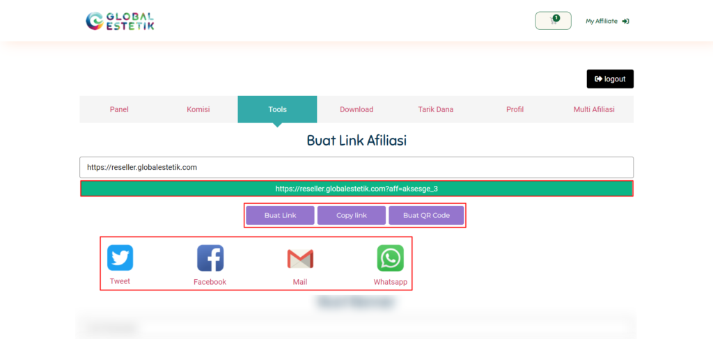 Buka website https://reseller.globalestetik.com dan klik menu My Affiliate